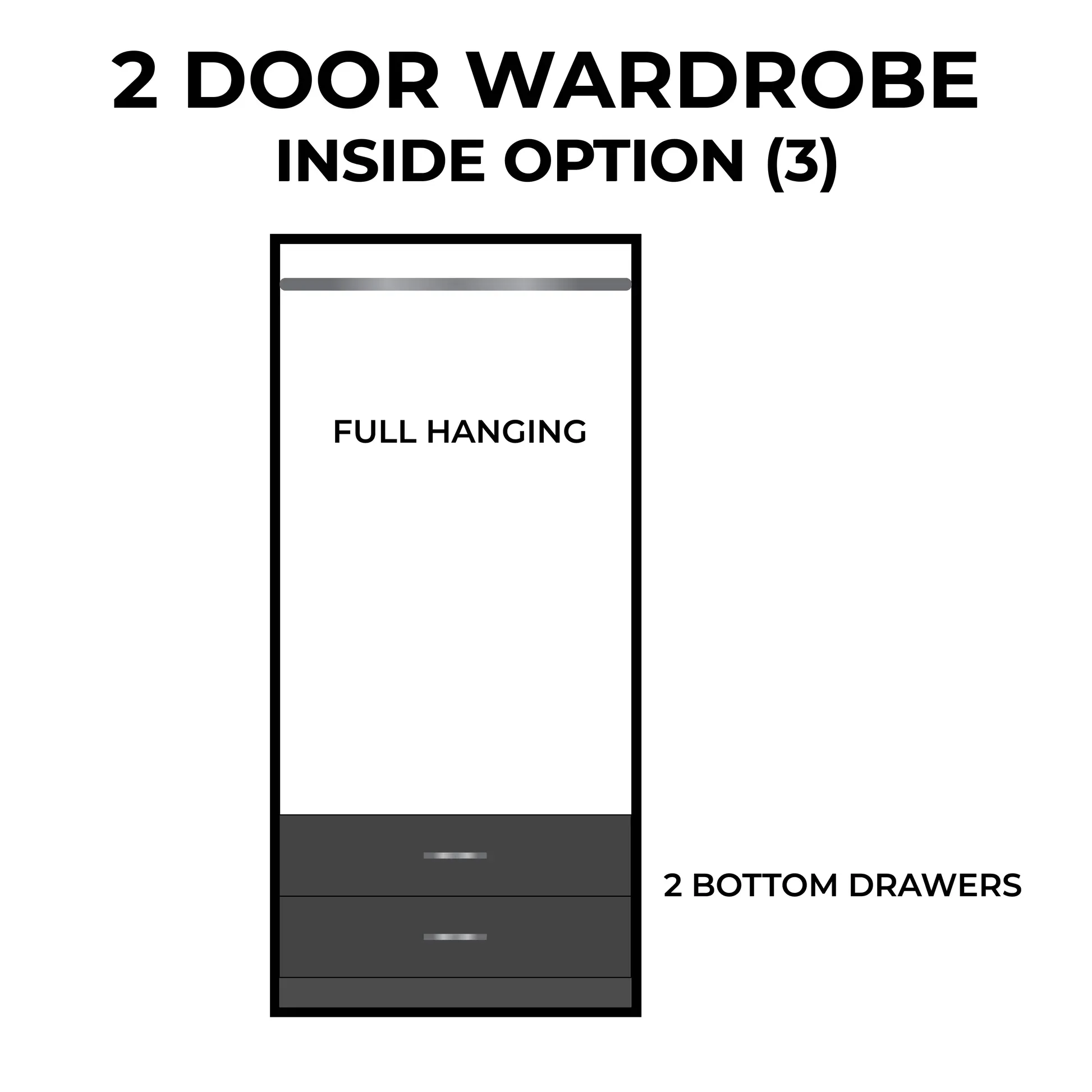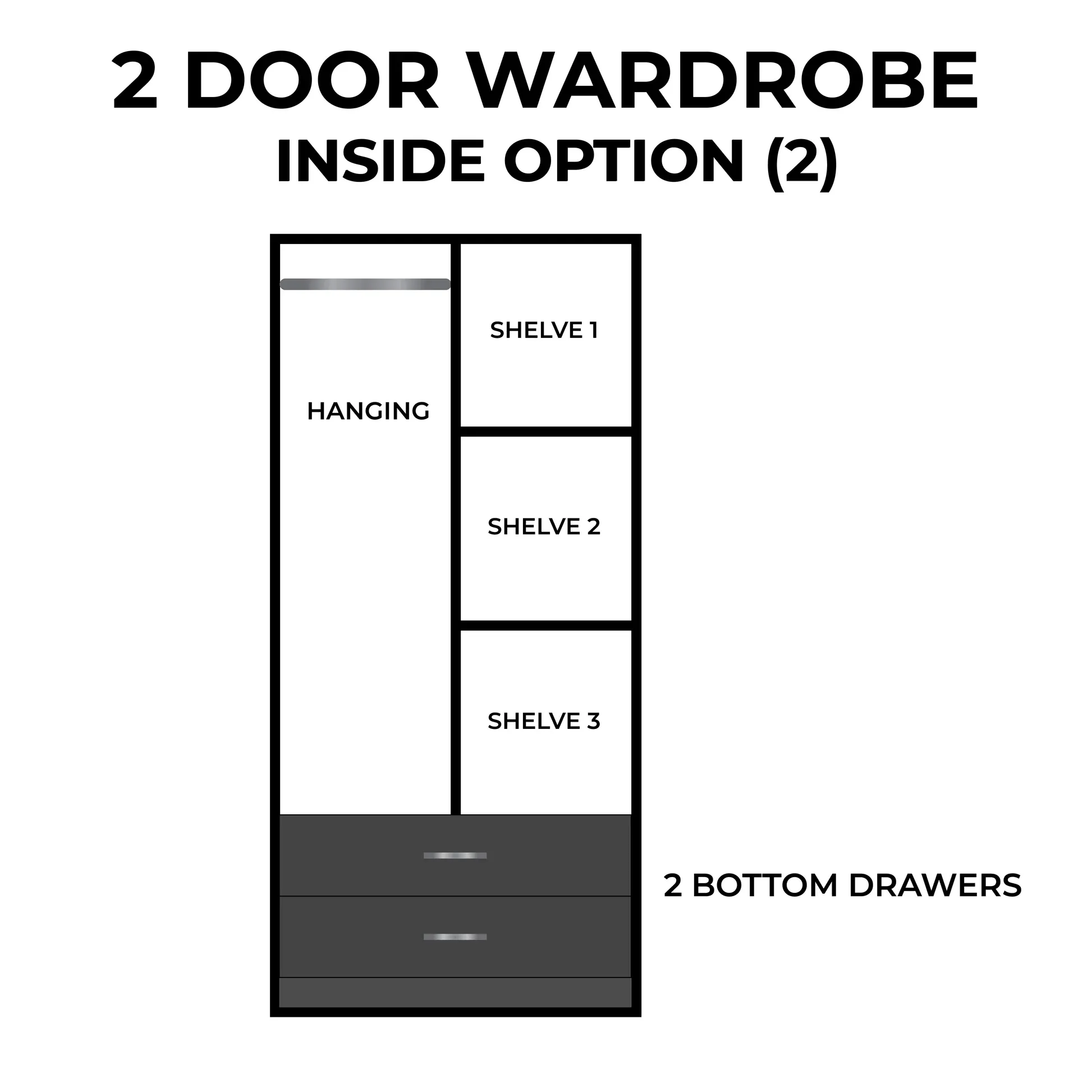 ✅2 door Wardrobe: Height – 184cm Width – 77cm Depth – 50cm
