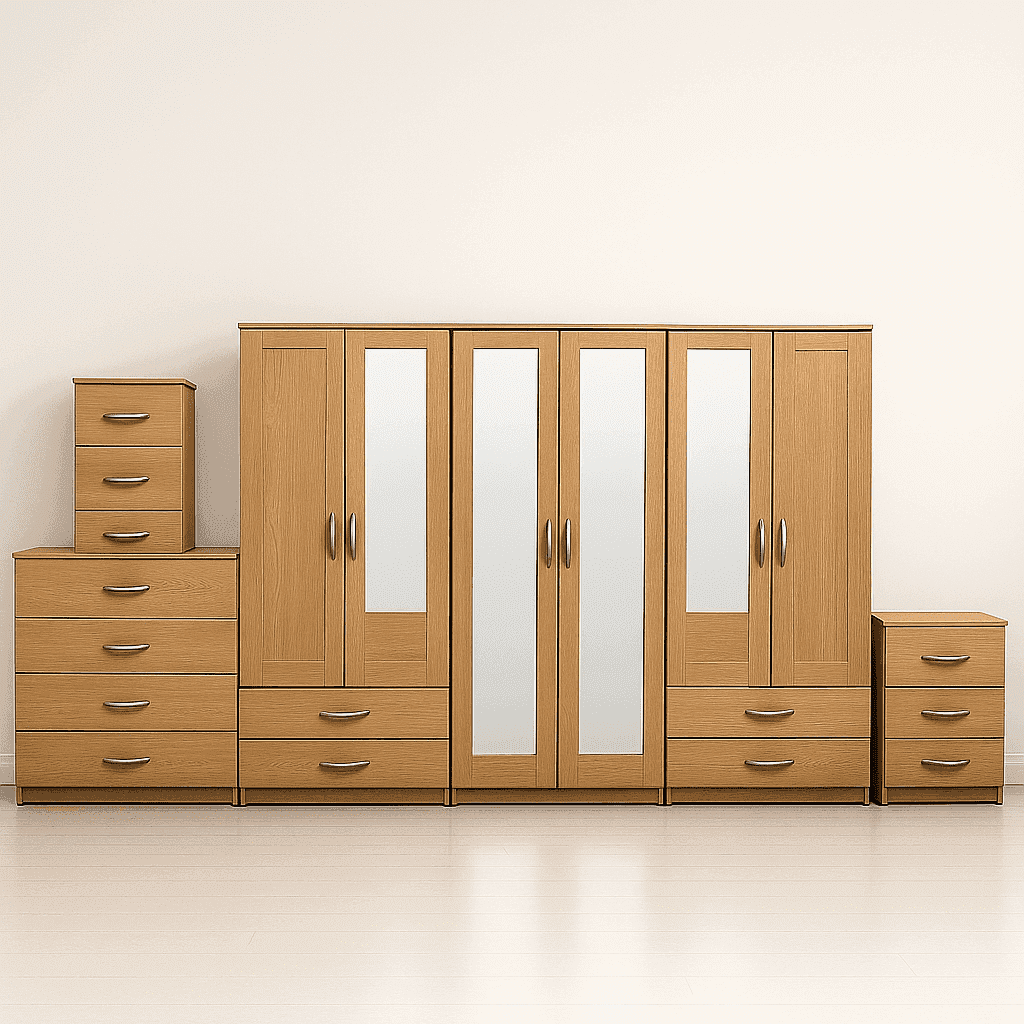 6 Door Wardrobe with 4 Mirror Oak ( Assembled )