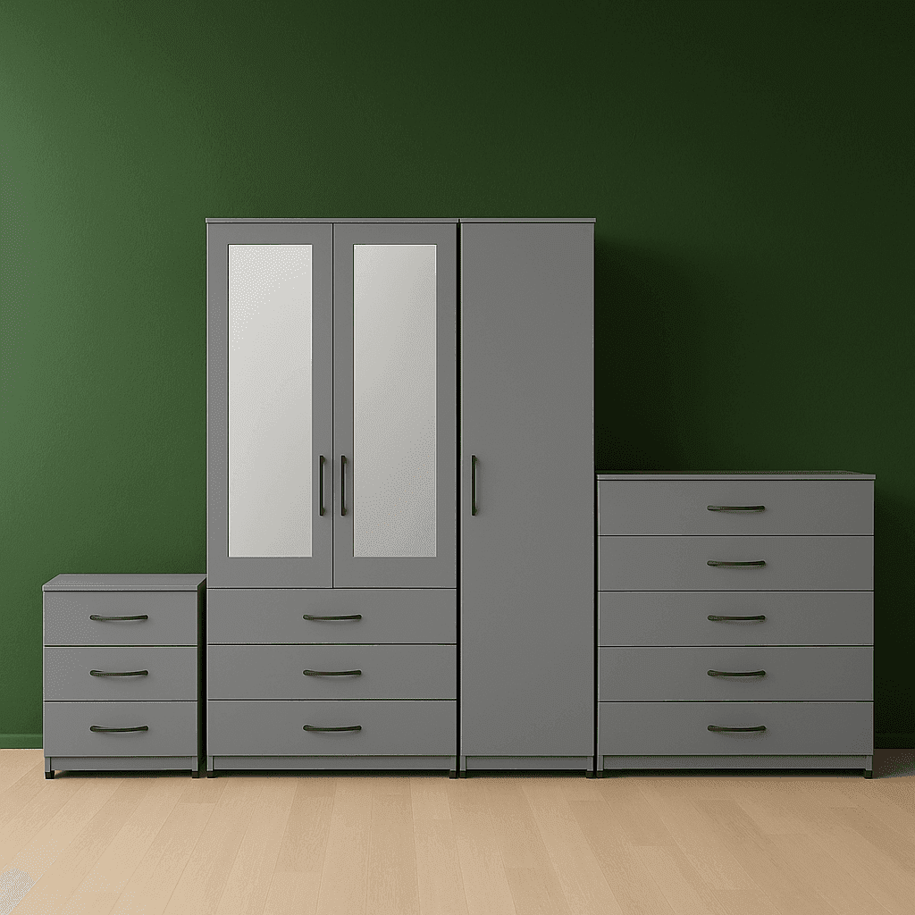 3 Door Wardrobe Set Grey ( Assembled )