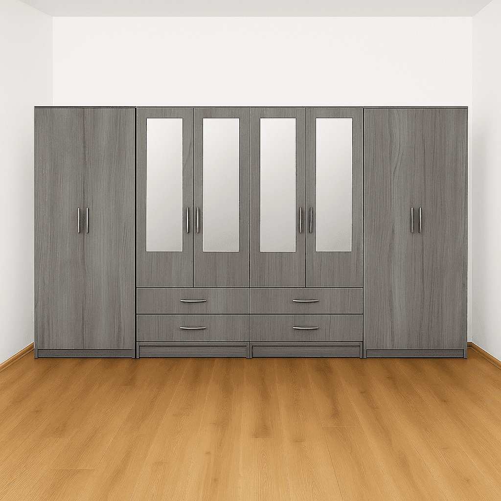 8 Door Wardrobe with 4 draws 4 mirror Grey ( Assembled )